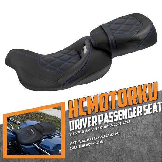 Low Profile Driver Passenger Pillion Seat Blue Fit For Haley Touring 2009-2023 | HCmotorku