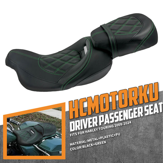 Driver Passenger Seat Cushion Pad Seat Pillion Backrest Green Stitching For Harley Touring 2009-UP | HCmotorku