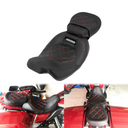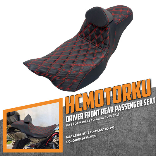 Passenger Driver Seat w/ Backrest Red Stitching For Harley Touring 2009-2023 | HCmotorku