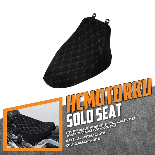 Solo Seat Cushion Suede White Line Diamond Fit For Harley Heritage Softail Deluxe 2006-2017 | HCmotorku