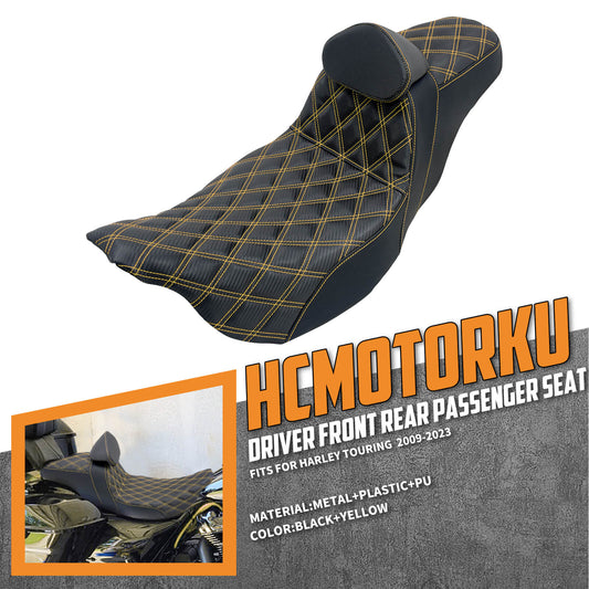 Driver & Passenger Seat w/ Backrest Gold Yellow Stitching For Harley Touring 2009-2023 | HCmotorku