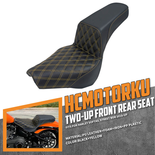 Bevel Two-Up Seat Driver Passenger Seat Yellow Stitching for Harley Softail 2018-2025 | HCmotorku